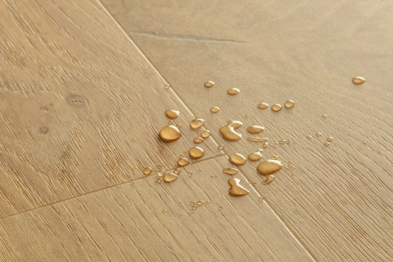 Spilled water on your LURF® floor from Quick-Step? No need to worry about raised edges or swollen planks! Our Hydroseal technology works with the Uniclic or Unizip system to fully seal the joints, making the floor surface entirely watertight. This prevents dirt and water from seeping through, protecting your subfloor from potential damage.